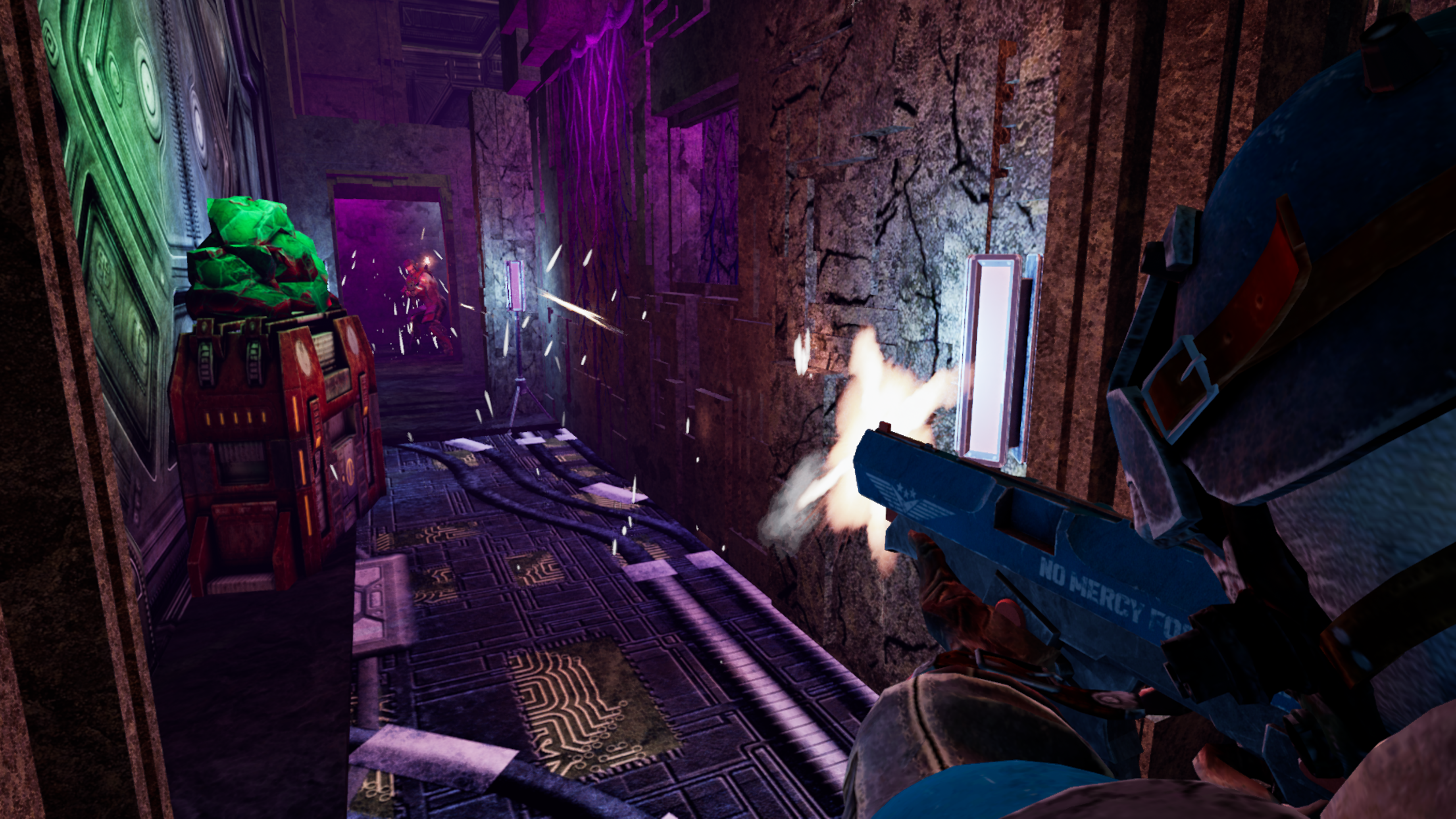 An explosive action shooter about humans versus orcs on intergalactic arenas. A unique protection mechanic - every player is wrapped in powerful armor that protects them and flies off upon impact. Replenish your own armor by defeating an opponent. Vibrant maps, unique weapons, and an unforgettable experience